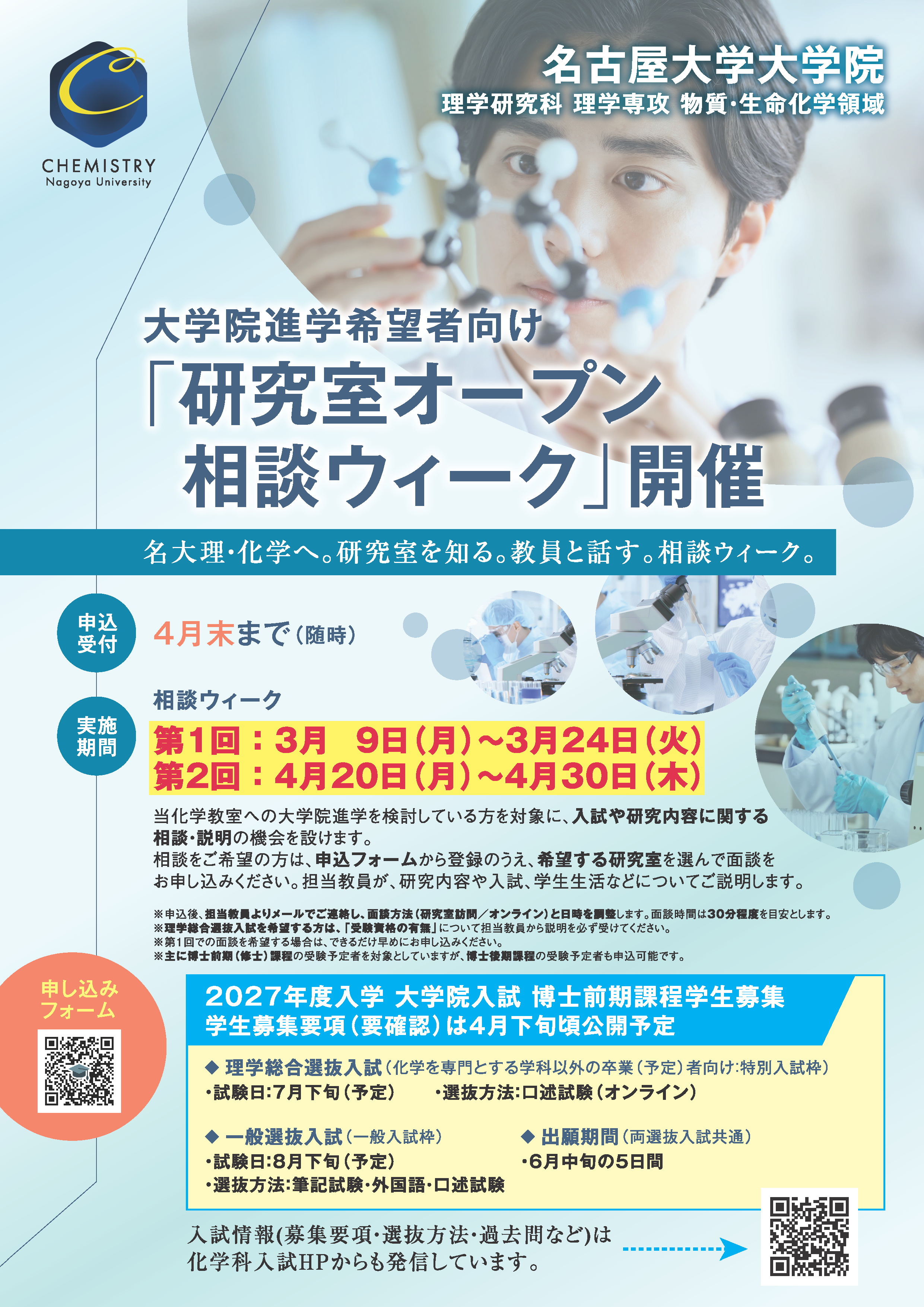 理学専攻(化学)は、大学院進学を希望している皆さんを対象として、